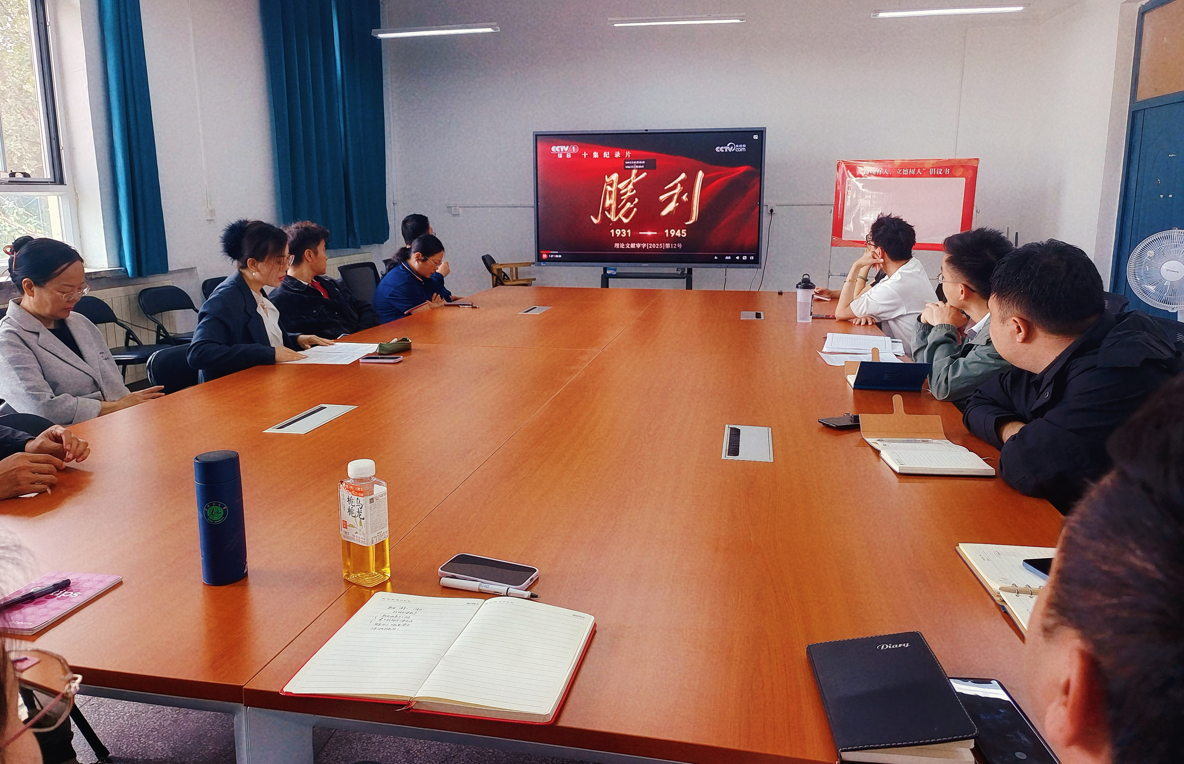 本次活动精心设置 “理论学习、影像感悟、倡议践行” 三个环节,具体分为学习重要讲话、观看历史纪录片、开展交流发言、发出党员倡议四项内容。活动伊始,全体党员集中学习习近平总书记在纪念中国人民抗日战争暨世界反法西斯战争胜利 80 周年大会上的重要讲话精神,深入领会伟大抗战精神的丰富内涵与时代价值,筑牢思想根基。随后,支部党员共同观看大型纪录片《胜利》第十集“从这里走向复兴”,借助片中珍贵的历史影像与详实史料,沉浸式回望艰苦卓绝的抗战岁月,进一步厚植爱国情怀和民族自豪感,强化做好新时代教书育人的使命担当。
