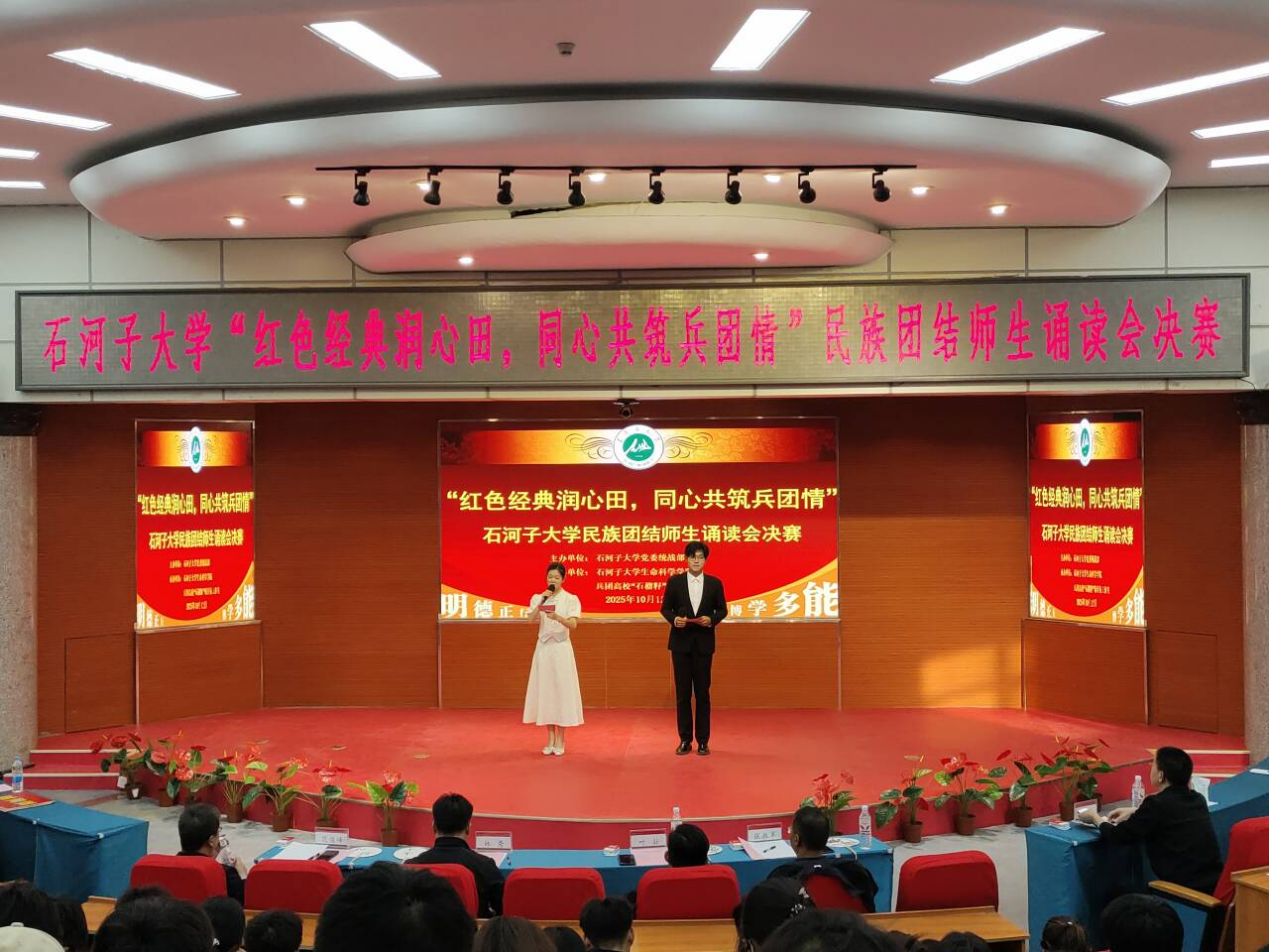 在新中国成立76周年、新疆维吾尔自治区成立70周年的重要节点,10月12日下午,石河子大学“红色经典润心田,同心共筑兵团情”师生诵读会决赛圆满落幕。此次活动由学校党委统战部主办,生命科学学院、兵团高校“石榴籽”辅导员工作室联合承办,经过前期初赛、复赛选拔脱颖而出的10支团队同台竞技,用声音传递兵团精神,用情感抒发爱国情怀。