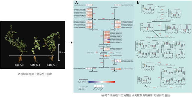 乌拉尔甘草(Glycyrrhiza uralensis Fisch.)是道地甘草法定基原植物,其根部甘草酸与类黄酮为核心药用活性成分。目前其主产区土壤镉(Cd)污染突出,抑制植株生长、降低药效成分积累,影响中药材质量安全及产业发展。陆嘉惠教授团队首次联合转录组学与靶向代谢组学技术,解析了外源硒(Se)缓解甘草镉胁迫、提质的分子机制,取得突破性进展。研究显示,外源硒可缓解镉胁迫的生长抑制与氧化损伤,降低镉积累、提升抗逆性,同时调控MVA/MEP通路及UGT基因促进甘草酸合成,时序性调控类黄酮关键基因维持代谢稳态,且长期施用效果更显著。该研究为解决甘草镉污染、提质提供了理论与技术支撑,也为硒在药用植物生物强化中的应用及机制研究提供了参考。